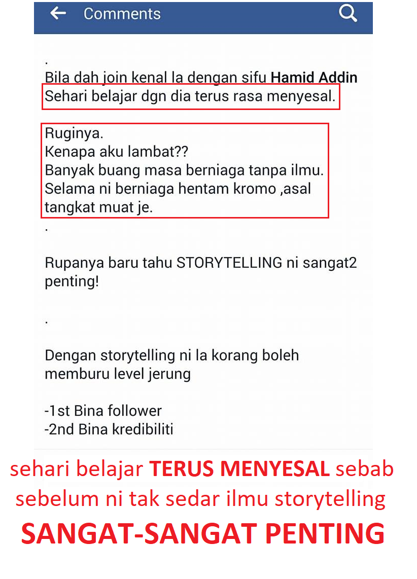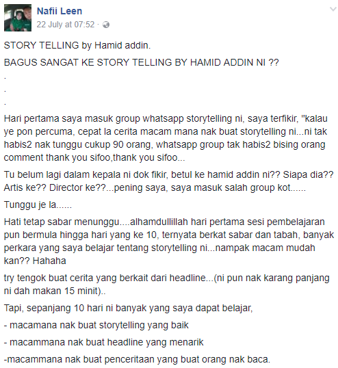 Nak lihat lagi apa kata mereka yang telah belajar ilmu storytelling bersama saya?