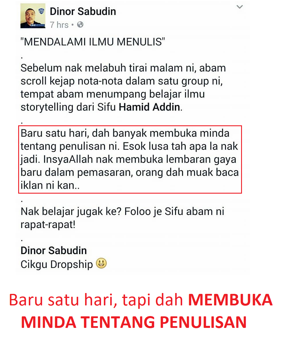 hingga anda sendiri mampu menjadi pakar storyteller seperti bekas murid saya ini (itu pun kalau anda mahu jadi seorang copywriter la)